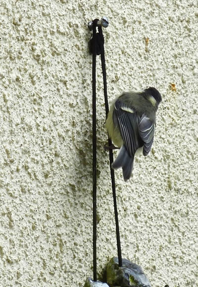 Neven den Hortensienbusch stünn so'n swatten Stock. Dor wull ik eerstmal hin un mi ümkieken. De Stock harr aver luder Zinken. Ik kunn mi jüüst noch an en vun de Zinken fastklammern.