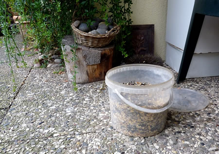 Neven den Ammer stünn uprecht en Eekkater. He harr sik wat vun uns Foder ut den Ammer haalt un freet dat up! Dat kunn doch nich angahn!!!
