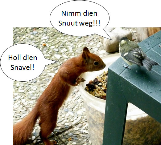 Ik heff wieder mit em schimpt. He müss mi doch ok an den Ammer mit dat Vagelfoder laten!