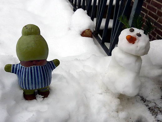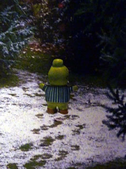 Ok in Tramünn weer dat kolt un ik müss wedder dörch hogen Snee stappen. Bi den Sneestorm harr ik mi meist verlopen. Wat en Glück, dat dor en Sneemann an Stratenrand stünn. Denn kunn ik fragen. De hett mi den Weg wiest.
