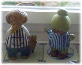Uns Leven tosamen weer miteens to Enn. Wi stünnen in en vörnehm Koophuus in Göteborg in en Glasvitrin. En lütt Deern ut Tramünn weer mit ehr Öllern to Besöök in Göteborg. Se entdeck uns un harr furts Malin, mien Süster, in ehr Hart slaten. Se bettel solang, bit ehr Vadder dat Geld rutrück. Egentlich wull se ok mi, Kalle, mitnehmen. Aver dat weer ehrn Vadder to düür.