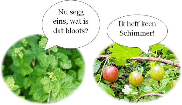 Stickelbeerbusch, dee jümmers licht wedderböstig weer. "Poppen freten?", froog de Johannsbeerstruuk.