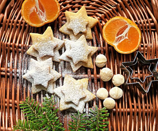 Dor keken all de Steerns in de Köök rin. Dor harr de Modder jüst en grote, swarte Kokenplååt ut den Åven trocken. Op de Kokenplååt legen vele Kokendeegsteerns, dee richtig schöön goldgeel backt weern.