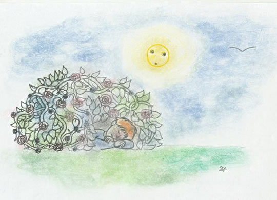 Oostfreeschkes Platt De Sünn har sükk all vöör good een halven Stünn'n hör dikket rodet Bäedtüchs torecht schküddelt un wee jüüst dorbi, schloapen to goahn. See har noch ähm vöördem in aal Höörns un Winkel tokääken, ov dat hier ünnern up de Eer ok aal sien Örnung har. Dat mook see jeder Oabend. Wenn see dat moal nich kunn, wiel de Wulkens so dorvöör ween, kreech see de heele Nacht keen Ooch to. Mörgens wee hör dat good antosehn richtich gääl keek see denn up de Eer doal. Lütt Jehann in de Brummelbeerbusch har see nich sehn kunnt, wiel he sükk heel noa ünnern verkroapen har. Nu har see aal Deerten un Minschen good Nacht sächt un wee to Ruh goahn. Lütt Jehann hukel dor, he troo sükk nich noa Huus to. He wull vermiddach, as Mama in d' Middachstünn'n wee, doch blossich een bäten mit Finger ut de Roompott schlikken. Dorbi is de Pott man so över de Disch suust un up de Grund körtfallen. In de Köäken up de Footdeel wee dat al vull Room. He is man so ut de Köken neit un in de Buschk rin. Un dor seet he nu un tro sükk nich. Dör de Bööm blenker noch so een bietje de hellerde Hääven man ünner de Bööm, in dat Buschwark, dor wee dat all düchtich an schummern. He wuß bold nich mehr, wat grötter wee de Angst vör dat Noa-Huus-Hengoahn ov de Angst vör de düster Nacht. Van alle Sieden har he all düchtich ropen hört, man he har sükk nich hören loaten. Tomoal verfäär he sükk dor wee hüm doch verraftich wat up sien Schoot sprungen! Sien lüütji witte Hoas wee hüm noakoamen de har hüm funnen. Wat nu? Mümmel, de kunn joa nich buten blieven de wur joa süük. Een lütt Settji tööf he noch in de Brummelbeerbuschk un denn stunn dat fast en kranken Mümmel? Nä, denn lever de Schellens van Mama. Mümmel up d' Aarm, rut ut de Brummelbeern un noa Huus to dat wee man een Doon. Mann, hevvt Opa un Oma sükk hööcht un Mama eers! Tja un wiel hüm sien Mümmel wichtiger wee, as keen Schellens to kriegen, hett de leev Gott dorföör sörcht, dat de Grooten de Soak van Middachs mit de Rohmpott laang vergäten harn. |