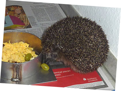 Liekers harr ik groten Hunger. De Fru harr mi wat Besünners trechmaakt. Ik kunn gor nich noog kriegen vun dat lecker Freten.