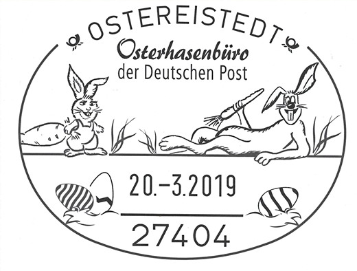 Dat geiht wedder los: De Düütsche Post maakt dat wedder kloor, dat Kinner Breven an den Oosterhaas schicken köönt. Kinner ut alle Welt (in de letzten Johren weern dat so bi 80 bit 100 Dusend) köönt em en Breef (Wunsch-Zedel) schrieven. De Oosterhaas hett vele Mitarbeider, de em helpt, op de Breven to antern. Denn man los, dat de Post rechttiedig ankümmt. Schrievt an: Hanni Hase De Oosterhaas kann ok plattdüütsch verstahn. Ik weet dat, ik wahn in sien Naverschap. |