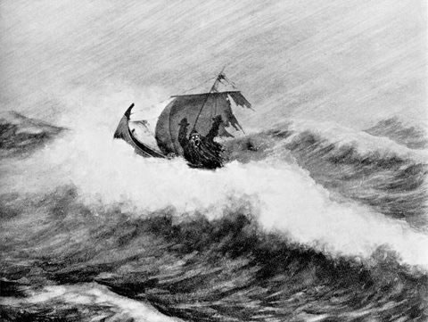 Geister. So sluut ik mien Vertellen över Geister to Wader un to Land mit de Psalmwöör: "De op de See mit Scheep daaltröken, Psalm 107, 23-29