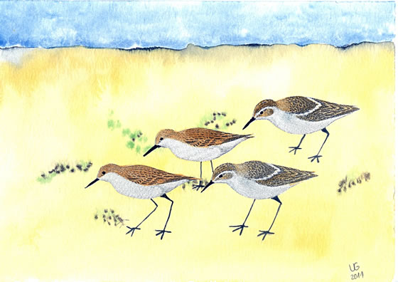 Noch nienich hett Talke op Juist en Rott sehn. Se warrt sachs mit Struukwark vun't Fastland röverspöölt woorn ween, liekso as de Reh, de miteens ok dor weern. Da, achter de Bööm staht al twee Reh. se sünd wull jüst op'n Karkhoff west un hebbt frische Bläder freten, denn se bevert noch, so fix sünd se lopen.