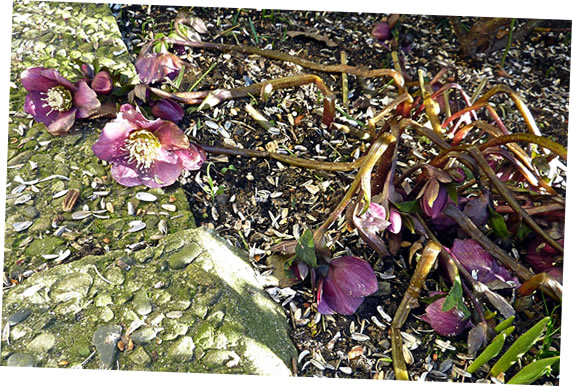 Aver, ooh Schreck! Wi sehg dat bi de Christrosen ut! Ik heff ümmer seggt: "Weest nich so neeschierig!" Nu legen se door mit ehr Köpp up de Eer!