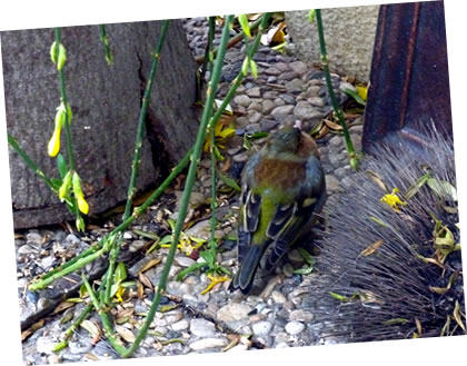 Ünner den Winterjasmin seet en lütten Bookfink. He söch Schutz vör den kolen Wind. Sowiet ik dat sehn heff, weer in den Goorn allens in Ordnung. Nu müss ik aver sehn, dat ik en Nachtquarteer funn. De kole Wind puust mi dörch de Kleder. Ik füng an to freren. Dat neegst Mal vertell ik mehr!