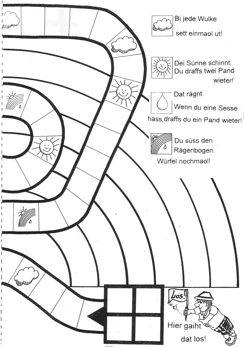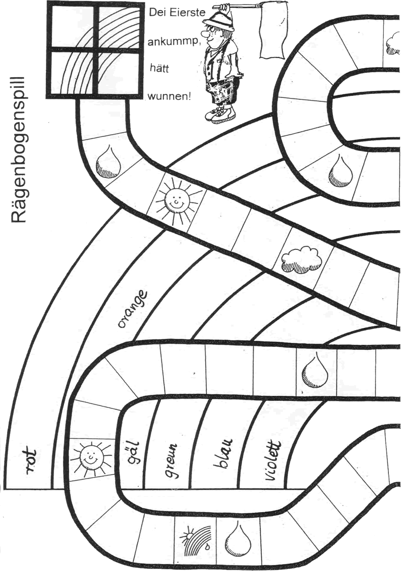 1. Kläw dei beiden Blör tauhoope! 2. Maol den Rägenbogen mit Buntstifte an! Denn gaiht dat los mit Wörpeln: |