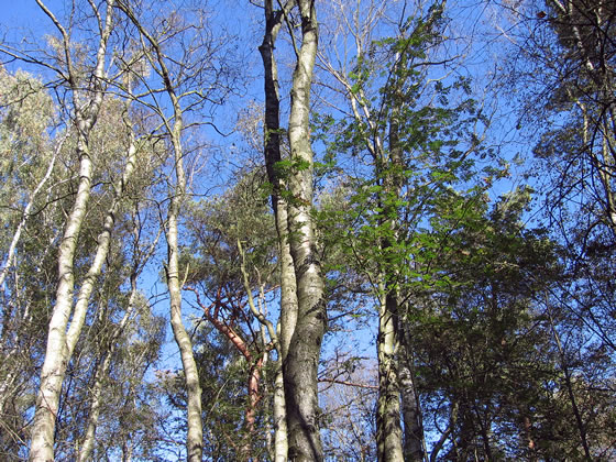 Wo ole un junge Bööm, Loof- un Nodelhölter bi'nanner stoht, gliekt de Woold en Huus mit vele Stockwarken.
