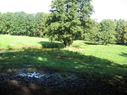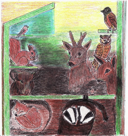 In't Eerdgeschoss gohn de groten Deerten so as Hirschen, Reh or ok Wildswien in un ut.