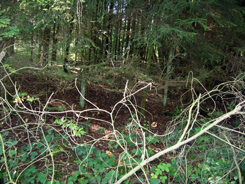 In Sommer kümmt kuum en Lichtstrohl dörch dat dicht Bläderdack, un op den Wooldbodden wassen blot Moos un Foorn.