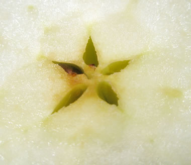 Ursprünglich wuss de Appel in Asien, aver all in dat Middelöller is de Boom na Europa kamen. Hüüttodaags gifft dat över 2.000 Sorten vun düsse Kernobstfrucht. Den Appelkern wiest dat Bild links.. He sitt in'ne Mitt vun dat sternförmig Fruchtgehäuse. Ut düssen lütten Kern is dat wohrhaftig mööglich, en Boom to trecken. Dat duurt twoors 'n Tiet, aver denn