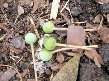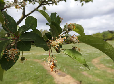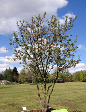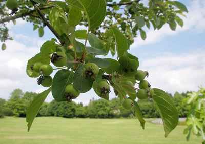Aver dat gifft uk 'n poor, de fallt fröh af. Op dat Foto is to sehn, wo lange Stengels se all hebbt. Düsse jungen Appels hebbt noch keen utbildt Kerne un köönt noch keen niege Appelbööm seien. So süht 'n jungen Appelboom ut. Wenn wi Glück hebbt, kriggt he schöne Appels, de denn in Harvst afplückt ward. |