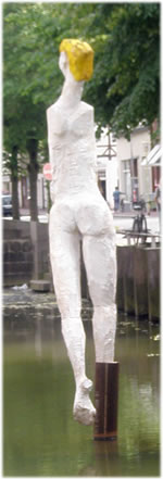 Mit de beid Hannen will de Künstler seggen: nehmen un geven. He meent, de goldfarven, opene Hand is dat geven. Ik heff seggt: Nee, jümmer de Hand opholen, dat is nehmen, ik will hebben ... Aver wie dat mit de Kunst so is: elkeen hett sien egen