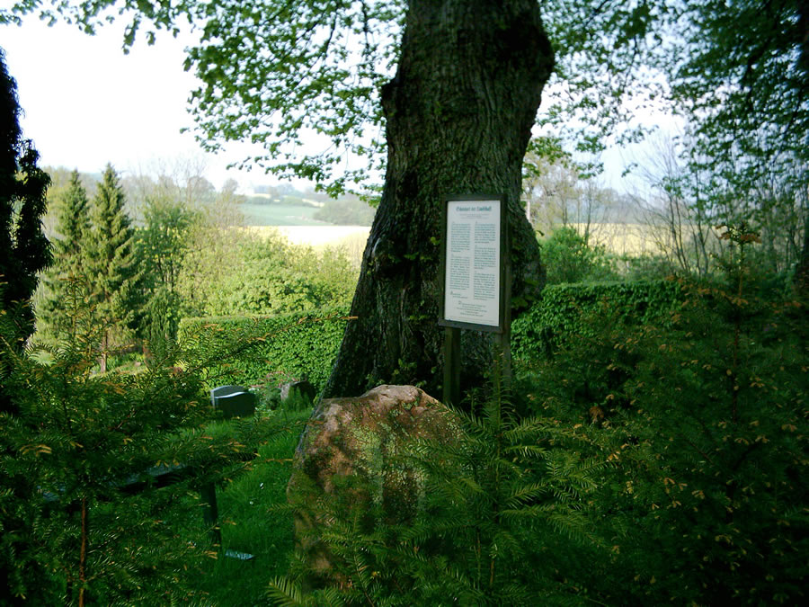 warrt sin tweete Fru Wat he anfungen, lostreden, vördacht hett, dat leevt wieder in uns dääglich Ümgeven, in de Planten, Parks, Karkhöff un Landschapen. Dat is en Denkmal, as he sik dat wünscht harr. Un jüst so de lütt Steen in Kirchnüchel. Alltohoop mutt een seggen, Christian Cay Lorenz Hirschfeld kunn keen betere Gedenksteed kriegen as jüst an düssen Plack. |