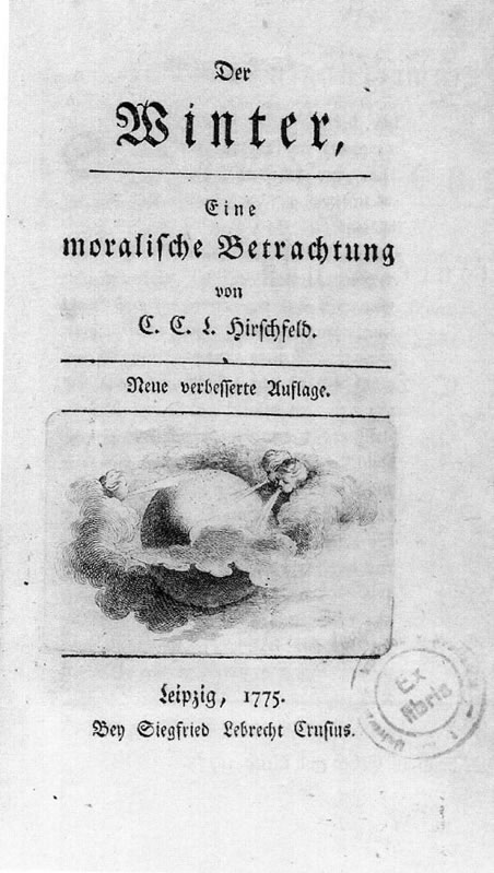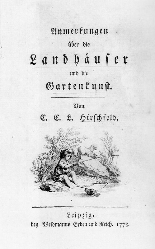 Krischan verleevt sik hier un heiraadt ok: He un Charlotte Hausmann warrt 1771 en Poor. Al 1 Johr later warrt dat eerst Kind boren, en lütt Deern un blifft in't sülvige Johr dood. Keen langes Glück is düt Poor todacht. Bloots fief Johr later, 1777, starvt ok de junge Fru. De junge Wittmann Krischan söcht Troost bi sin ole Toflucht, de Natuur, un verbuddelt sik togliek in Arbeit. 1779 kümmt in Kiel sin groot Wark "Theorie der Gartenkunst" rut, dat den Grundsteen leggt för de Landschapsgoornerie in Düütschland un Europa un dat för so beropene Goornarchitekten as Sckell, Lenné, ok Fürst Pückler to en Aart Bibel woor. Dat Wark hett fief Bänne (!) un woor to Krischans Leevtieden alleen dreemaal opleggt. In düt Book stekt Hirschfeld sik en heel wiedes Teel: He will beschrieven, woans de Natuur un de minschliche Seel tosamenwirkt. Dat is keen praktisch Ünnerwiesen för Goorners, sünnern en philosophisch-psychologische Theorie (so nöömt he ja ok dat Book) doröver, wat de Natuur för den Minschen bedüüd un welk Landschaps- un Natuurphänomene in den Minschen wat för Geföhle utlööst. Dat will Hirschfeld opslöteln un togliek en Systematik anbeden, na de de Goorners ünnerscheedlich Reize Harmonie, Melancholie, Heiterkeit, Pathos, Romantik, Beruhigung... dör landschapsgoornerische Middel tostann bringen köönt. Dorto gifft he ok vele bildliche Bispele in de fief Bänne. J.H. Brandt maak för em massig schöne Kopperstiche vun bispillhafte Landschapsansichten. Hirschfeld will nix minner as de Spraak vun de Natuur de Spraak, in de dat grote Book vun de Welt schreven is för den Minschen verständlich maken, mehr noch: den Minschen instand setten, düsse Spraak sülven mit de Natuur to snacken. Dorför brukt he in sin Book faken ok de Poesie. Wenn Se op dat Bild rechterhand klickt, köönt Se poor Uttöög ut dat Book in Vergrötterung lesen. Knapp dat dat rutkeem, sünd de Minschen överall