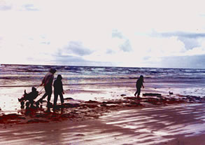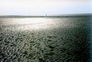 De Tide Loslopen plattbarft Footspuur in'n Sand, Wat piekt un snitt, Jümmer wieder! Dreih üm! Loop gau to! de Priele, bit to de Boost. |