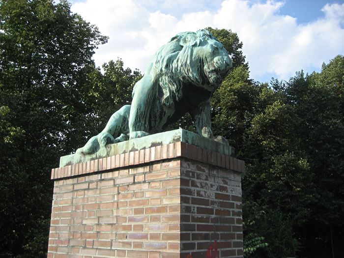 An dat End vun disse hoge un brede Brüüch sitt twee Löwen,