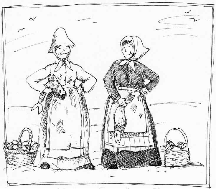 vun Karl-H. Nissen Ok de Fruun sünd nett to'nanner, ok de Fischfruun an de Obertrav. Anne un Hanne, se sünd beid ut Schlutup, se kennt sik al lang. Liekers kümmt dat vör, dat se sik nich ganz eenig sünd. Letzt harrn se sik en beten bi de Ohren, un an'n End, dor hett doch Anne tolangt, mit enen groten Dösch, Hanne mirrn in dat Gesicht. Se sehg en beten bunt ut, glitschig vun de Dösch, un en beten Bloot leep ok dor mank.