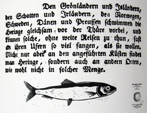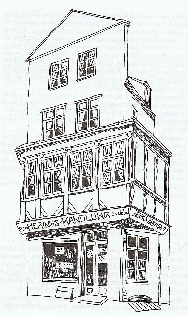 Vele Fischladens hebbt fröher blots mit Hering hannelt, mit keen annern Fisch. Ok hier in Lübeck geev dat so enen Laden, de stünn an de Eck Markttwiete. Dat weer en lütt Huus. En groot Schild leet weten, dat hier "Solten Hering en gros un en detail" verköfft warrt. Up de lütt Deel stünnen vele Herings-Tunnen. Dat geev bi de sollten Hering groot Ünnerschied in'n Smack aver ok in'n Pries. De besten weern wohl de Schotten un de Norweger. Un in'n fröhen Sommer wenn de jungen Kantüffeln sowiet weern , denn kreeg de een orrer de anner Tunn en Schild ümhangt "neue Ernte".
