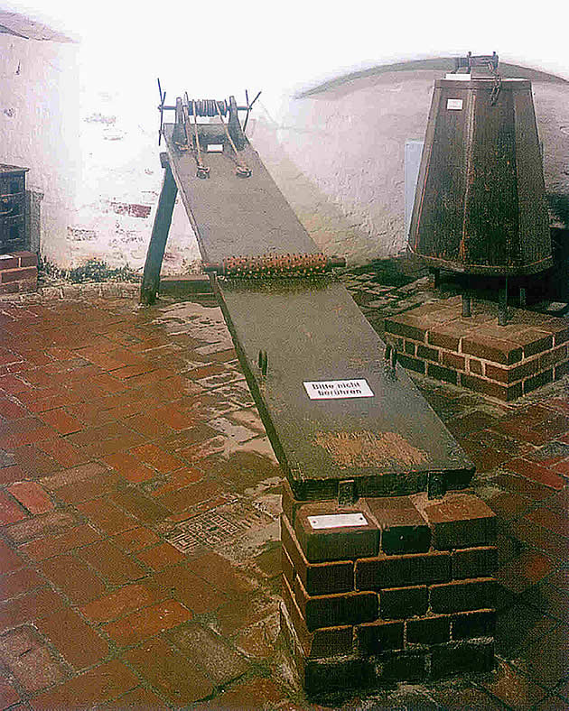Hier, wo de Ingang un de Kass is, hier weer lange Tiet en Folterkammer