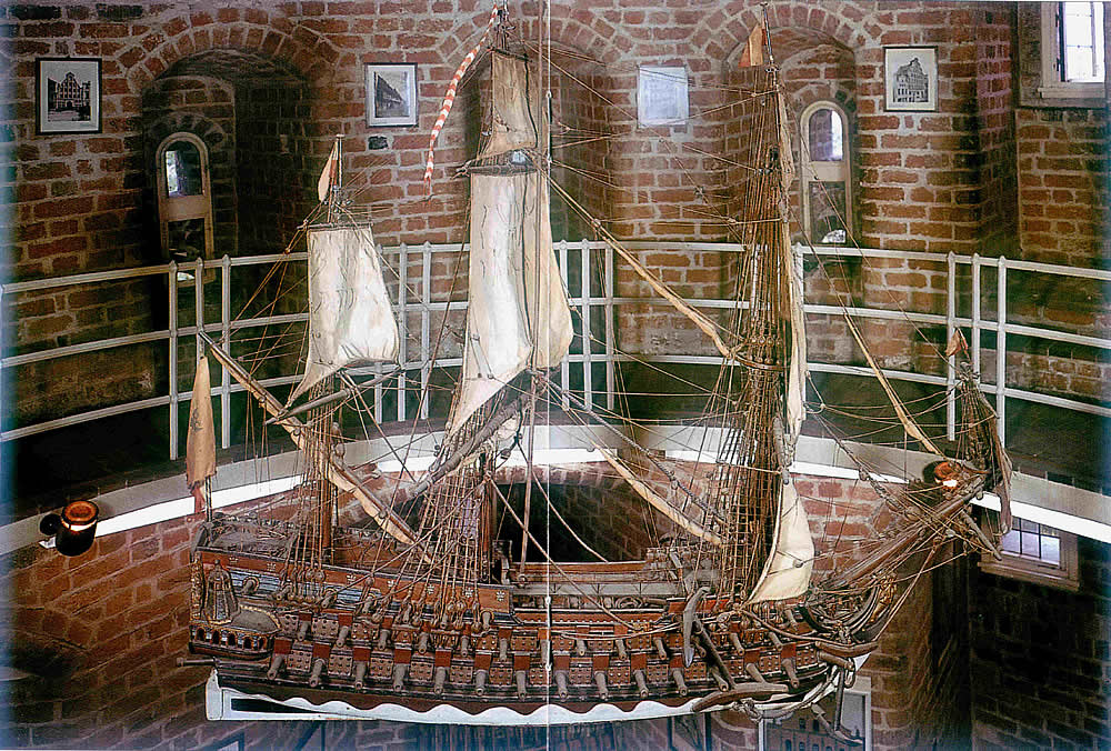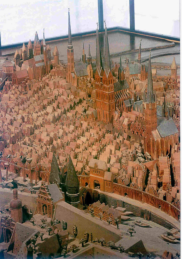 Twischen de beiden Torms is en groot Modell vun de olle Stadt antokieken.