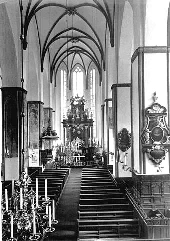 un vör uns den Altar. Links un rechts staht noch de ollen Bänke,