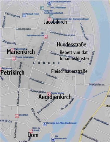 ik al vertellt, wi harrn aver noch mehr Kirchen in Lübeck.![]() Veer Klööster geev dat, jede harr ene Kirch; un ok to dat