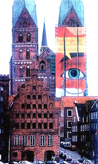 mi twee Gründe, en weltlich un en geistlich: De weltlich Grund: Mi empöört dat, wenn Buwarke, de för Minschen en Symbol sünd as dat Brandenborger Door orrer even uns' Marienkirch to Werbezwecken nützt warrt. Dat Geld triumphiert över elkeen anner Form vun Bedüden. Mien geistlich Inwand is vun fundamental Oort. Achter de Biller un