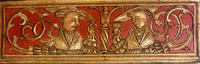 So en Platz heet "Gelage". An de Sieden sünd Wappen insneden,