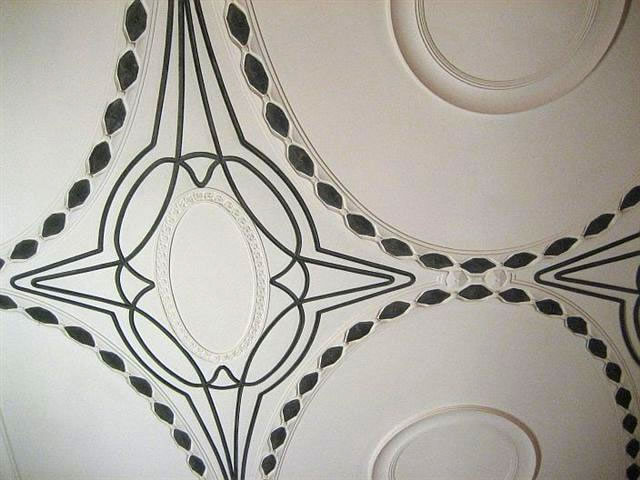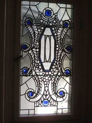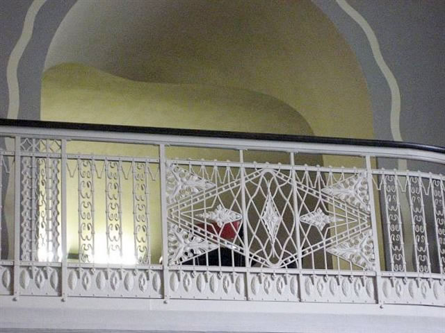 mit veel Jugendstil, mit Treppen un Finster un Ranken an de Deck un