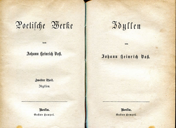 Wi weet woll, in de dore Tiet weer Platt keen' Literaturspraak. För mi süht dat so ut, as wenn Voß bewiesen wull, dat he sogor ene wedderspönstige Spraak as use in den Panzer van siene Hexameters slaten kunn. De Idyllen to lesen, hüüt is dat'n eegen Oort van Vergnögen. Eenfach is dat nich. De Geldhapers woorn 1777 druckt; een kann ok mit hoochdüütsche Texten ut de dore Tiet sien Last mit hebben.