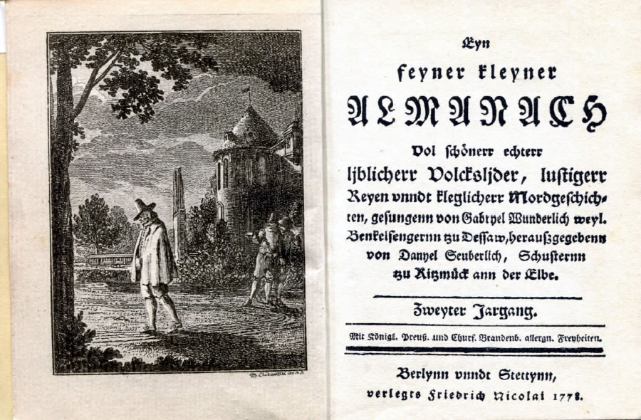 Nicolai, dat mutt seggt warrn, dacht nich an Poesie un Literatuur, as he den Almanach schreev. He wull sik över de romantischen Dichterslüüd lustig maken, de wunner wat in de Riemels söken deen, de ehr' Knechten un Wichter sungen. De Pointe an'n Sluss hett he woll daarto funnen, mi dücht, de hett Möser em nich schreven.
