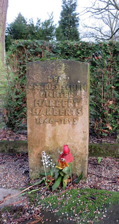 van de junge freesche Dichtung. 1867 Harbert weer nich goot utrüst för't Leven: de heele Tiet schetterig un küüm, un 'n Knuust harr he ok up'n Puckel. Un denn brook he sik 'n Been un weer lang in't Krankenhuus dat weer dunnemals ok al oordig düür. De Beroop van en frieen Journalisten is hüüt 'n hartet Broot un dat weer do jüst so; Harbert holl dat ut bet to'n Oktober 1895, daar schoot he sik 'ne Kugel dör'n Kopp, in de Böker steiht "infolge andauernder Nahrungssorgen". De Denksteen in Ohlsdörp hett keen Graffsteed bi sik. Woneem Harbert Harberts siene Knaken afbleven sünd, dat kann nüms mehr rutfinnen. Man brukt wi de Reliquien as in de Kark? Wi warrt em woll in siene Gedichten wedderfinn'n.