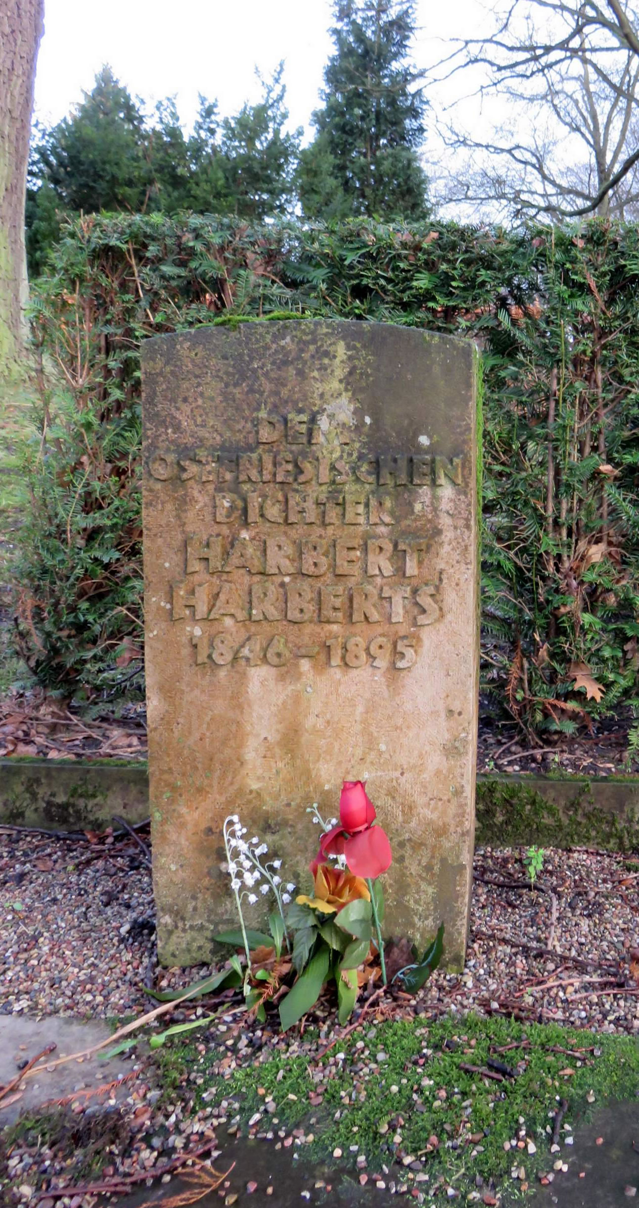 Up den Ohlsdörper Karkhoff in Hamborg steiht 'n slichten root-brun Graffsteen: Dem ostfriesischen Dichter Harbert Harberts, 1846 1895. Oolt is he nich worrn, nich mal fofftig, hest al van em hört? Een Book mit Gedichten, twee mit Prosa: 1882 Der Honoratiorentisch in Dingsda, humoristische Erzählung; 1883 Über dies und über das, kleine Geschichten twee lütte Böker, de nu al hunnertundartig Johr oolt sünd, un wenn du de nich kennen deist, kannst liekers geruhig slapen. Wat anners is dat mit Wilde Ranken (1867), de schall een sik nich ut de Nees gahn laten, dat sünd de Gedichten. Un wat weer dat nu för een, disse Harbert? He was 1846 in Emden