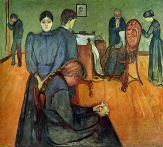 De jung Edvard Munch maalt. Hei maalt den Doot un de Doden, un in Andenken an sien Süster maalt hei jümmer wedder de Dodenstuuv. De starven orrer storven Deern is nich to seihn. Hei steiht alleen in de Eck. Nüms nimmt nüms an de Hand.