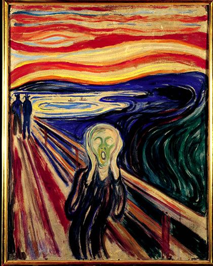 Naturwetenschop kannst nich in Kunst översetten. Nu schall ok Sluß sien mit dat klook Reden un wi will uns dat Bild "De Schrie" vun 1893 nauer ankieken.
