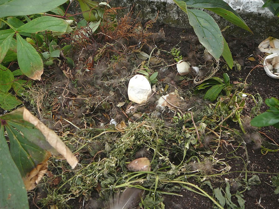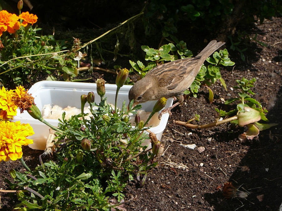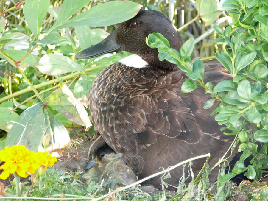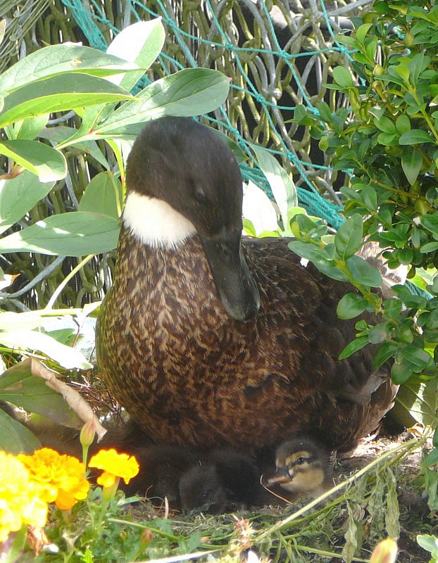wi mit eens wies, dat in de Blomenrabatt en Aant up ehr Nest seet.