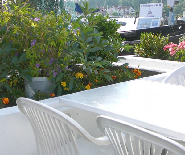 enen Disch. Blangen unsen Disch weer en Blomenrabatt. Dor wöörn