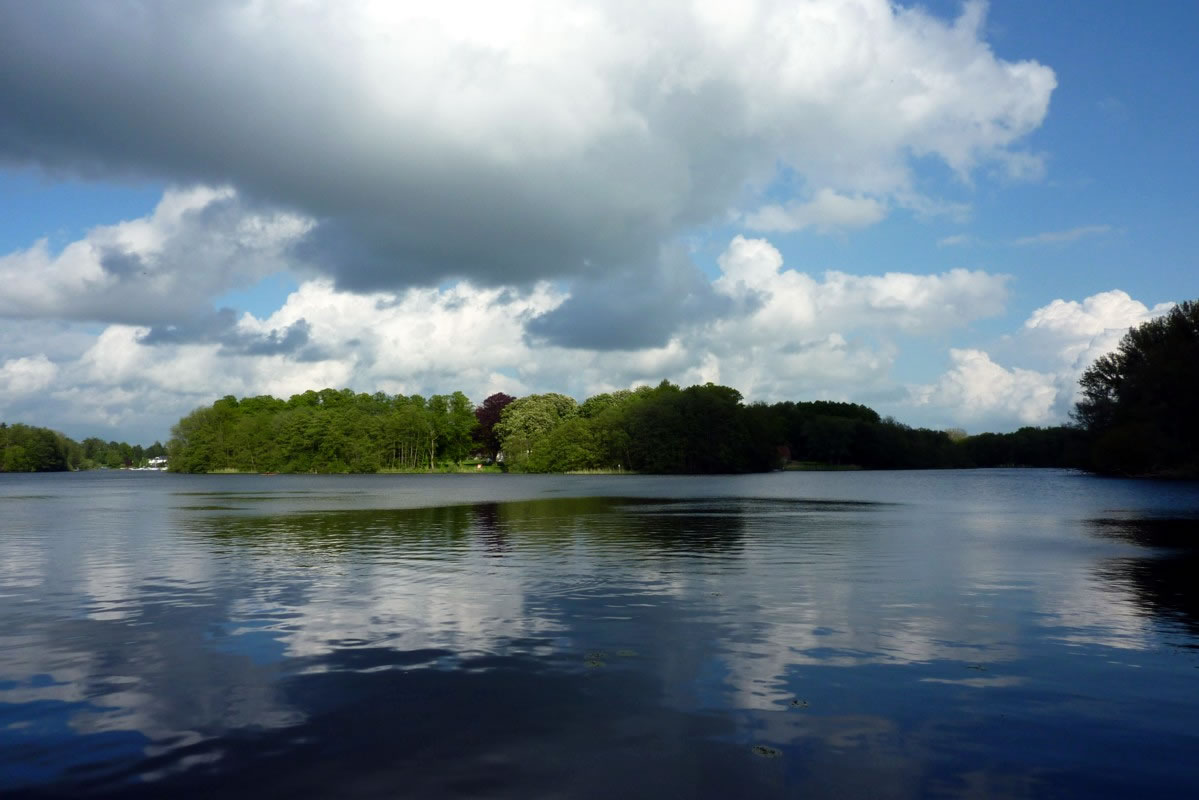 den lütten See schippert. Up de linke Siet vun't Över wöörn