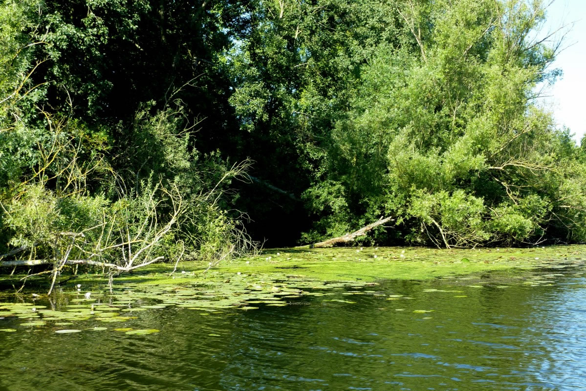 Dörch de Waterpest, en Waterplant, weer de Wakenitz deelwies