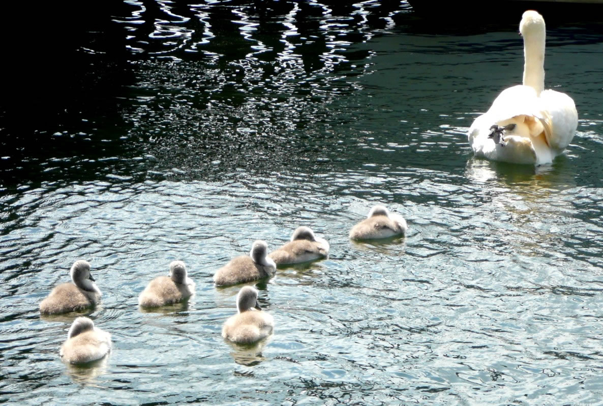 trock en Swaan mit lütte Kinner siene Bahn. Över uns kreis