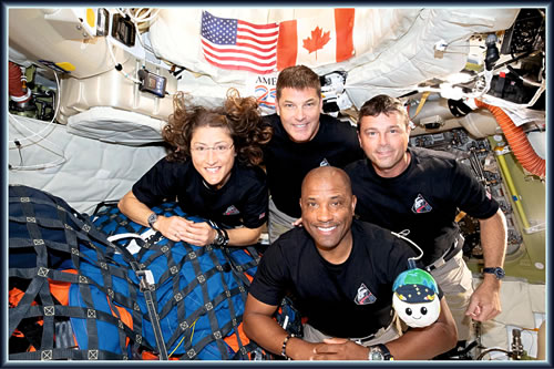 Taufräe kunnen dei Ruumfohrers sick up dat Schipp verhaolen. Christina Koch kunn et noch gornich glöben, dat dei Maondflug so fix vörbi was. Süh uck hier: NASA-Bericht Südollnborger Platt: Ludgerd Lüske