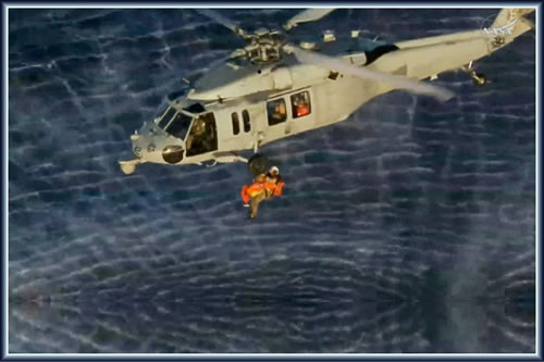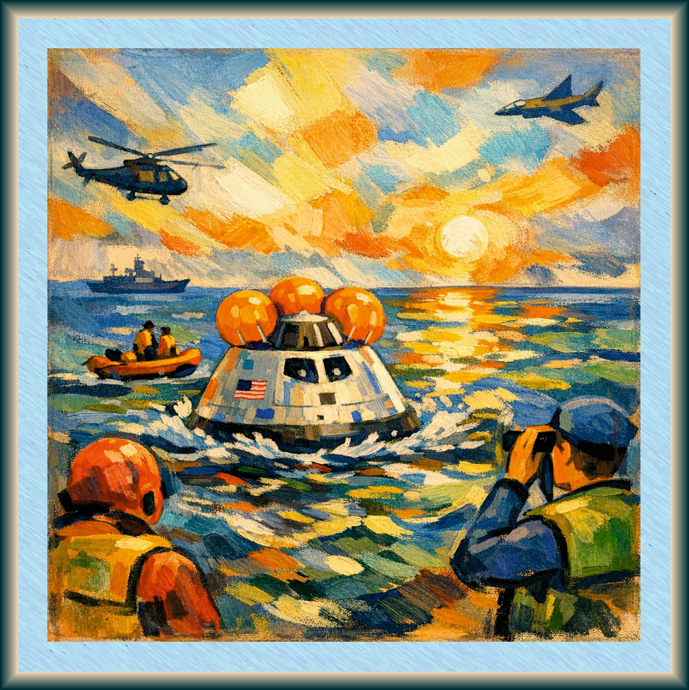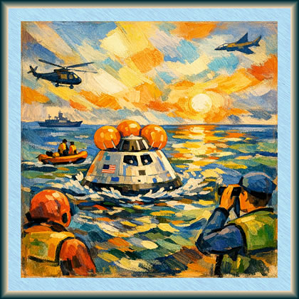 Eine Stünne nao dat Waotern dö dei Mannschkup ut dei Orion-Kapsel in ein Schlauchboot ümstiegen. Dornao güng et mit Helikopters an Bord van dei USS John P. Murtha. Dor geef et för jeden eine lüttke Kaomer, wor man dat medizinischke Ünnerseuken maoken kunn. Eiers dornao kunnen dei Astronauten nao dat Ruumfohrt-Zentrum in Houston fleigen.