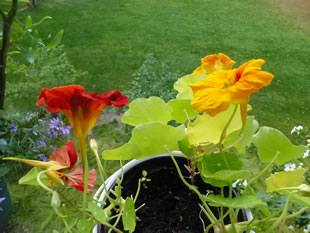 Köönigskinner noch dree Bläder von de Kapuziner Kresse,