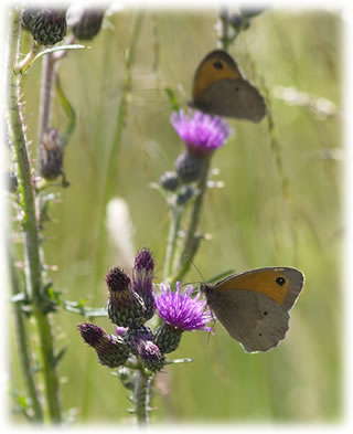 ![]() Bottervageljohr 2018 In de verleden Johrn sünd uns flegen Insekten gewaltig trüchgahn. Dorüm hebbt wi düt Johr en Kalenner uns Bottervagels toegnet. Thomas Seemann hett för en Fotokalenner (rutbröcht vun sien Team "Tandem"/OBW) de schöönsten Bottervagelfotos tohoopstellt. Wi bringt de Fotos hier, stellt de Bottervagels vör un ehrt ehr mit en Vers. Se köönt de Fotos per Klick vergröttern. Trüch kaamt Se denn mit den Zurück-Knoop op de Browser-Symboolliest. Bottervagel vun'n Maimaand: vun Thomas Seemann un Marlou Lessing Dat Ossenoog is en "Ogenfalter", woso, dat is glieks to kennen. Wat so sünnerlich as en Oog wirkt, is de lierlütte witte Fleck merrn in dat swatte Oog. All Ogenfalters höört to de Eddelfalters, man nich all Bottervagels, de "Ogen" op de Flünken hebbt, sünd Ogenfalter. Hier is dat en Heken, dat sik op den Sünnenhoot den Buuk vulllsleit. De Sünnenhoot kümmt ut Noordamerika un is en heel beleevte Goornplant bi uns worrn. Ok dat Ossenoog is in Noordamerika tohuus, avers ok in Europa un Asien op de ganze Noordhalvkugel, 'neem dat Klima nich to koolt is. Sien Rupen bruukt Gräser to'n Freten, un apen, aartenrieke Graswischen warrt ror in uns Agrarwöösten. Noch is dat Ossenoog nich bedrauht, avers dat kümmt langsam ünner Druck. De Ogenfleck Woso hebbt Falter eentlich düsse opfallen Flüchten, woto deent dat "Oog"? Nu, bi all düsse Falter kannst sehn, dat de Bövensied vun de Flünken opfällig tekent is, de Ünnersied avers heel unopfällig. Dat is in dat Bild baven good to kennen. De Trick is ganz eenfach: De Ünnersiet is för de Tarnung wenn se t.B. an en Boomstamm sitt, denn is so'n Ossenoog reinweg nich to kennen. Hett avers jichenseen Fiend ehr liekers utfunnen un drauht ehr to freten ja denn foolt se de Flüchten uteneen, un de Fiend kiekt miteens in de "Ogen" vun en veel grötter Deert, kriggt dat mit de Angst to doon un neiht ut. De Bövensiet is also to Afschreckung! Dat Bild nerrn wiest en Ossenoog-Heken mit opslaan Flünken. Kiekt Se dör de Wimpern, denn köönt Se sik en anner Deert vörstelln, dat Se ankiekt.