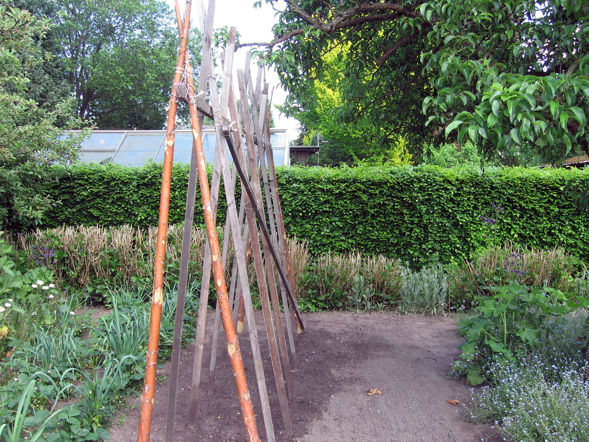 Tweeunhalf Meter lange Holtstangen hett he buut un in de Eerd steken,